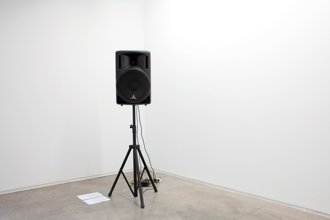 The exhibition presents two pieces (produced expressly for this show) that questions the role and behavior of its spectators. At the entrance of the exhibition is He esdevingut (I’ve become), an audio installation of a male voice interpreting a text by Peter Handke (author, playwright, Austrian director, and exponent of the neoavanguardia). The fragment is taken from Self-Accusation, a piece where the interlocutor explains how he had to learn a series of behavior patterns and rules in order to become a social being. Supporting this idea is a photograph present in the same space, from Saladrigues’ project Her Museum, that was shown in Espai 13 of the Joan Miró Foundation, Barcelona. This work functions as an icon of prohibition, an image of the rules. In this way, the artist invites us to become more aware of who we are, the path we have followed and what we are doing here.